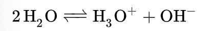 Vand dissocierer spontant til hydronium og hydroxid-ioner (OH-), under ligevægten beskrevet. OH- ionens basevirkning, afbalancerer syrevirkningen fra hydronium’et, og pH holdes neutralt.