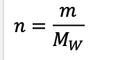 Angiv sammenhængen mellem stofmængde i g, antal mol, og molvægt