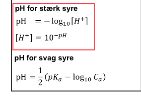 Angiv formlerne for hhv. svag syre, og stærk syre