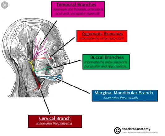 What are the extra-cranial branches of the facial nerve?