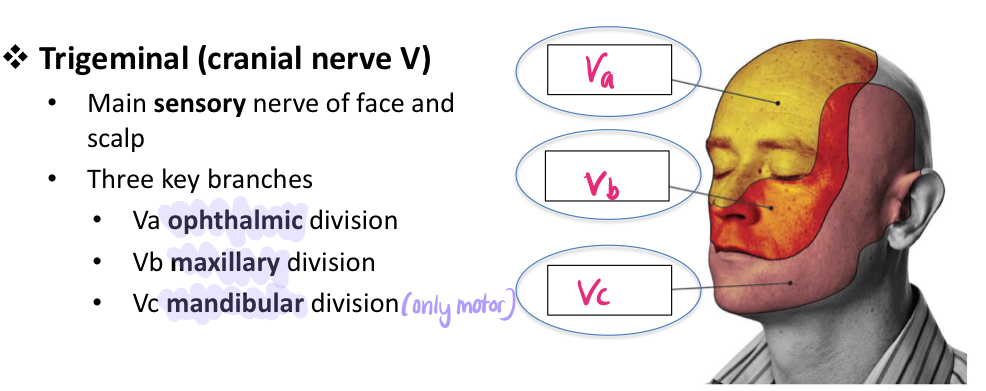 What nerves supply each sensory part of the face?