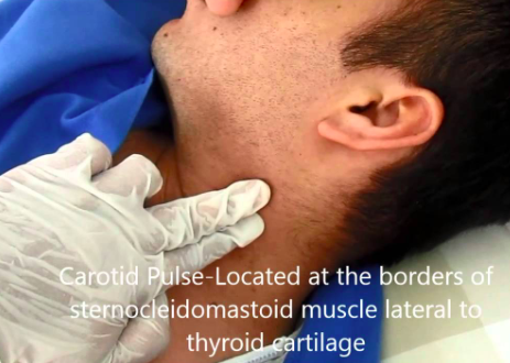 Where can you palpate the carotid pulse?