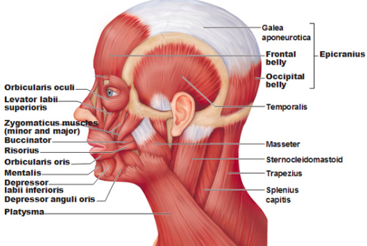 Label the following muscles of facial expression and the action that they have: