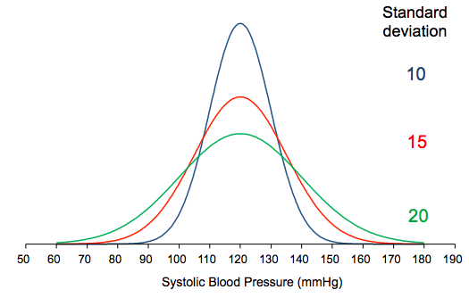 In a Gaussian distribution (pic) what happens if you change the standard deviation (decrease/increase)?