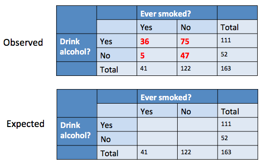 How would you calculate the numbers in the expected table?