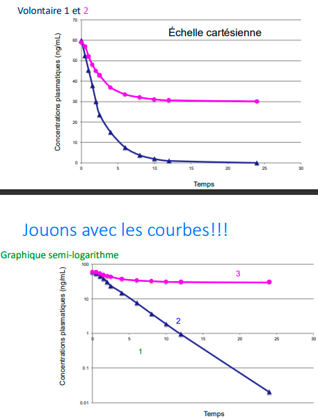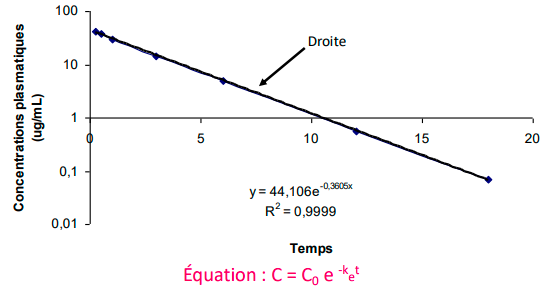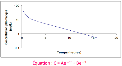 Expliquer les pentes du modèle bicompartimental et interpréter les vitesse d’élimination