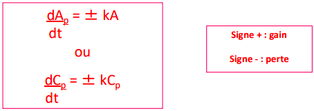 Une cinétique de cet ordre signifie que la vitesse de transfert est … à la quantité (A) ou à la concentration plasmatique (Cp) du médicament.
