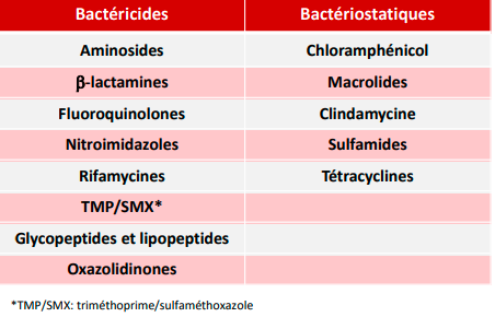 Différencier les classes d’ATB bactéricide vs bactériostatique: