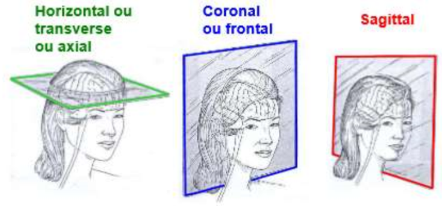 Quelles sont les différents axes de coupes d’un cerveau ?(citer leur nom)