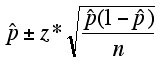 <p>p̂ ± z* (sqrt((p̂ * (1-p̂) / n))</p>