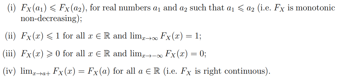 What are the properties of the cdf