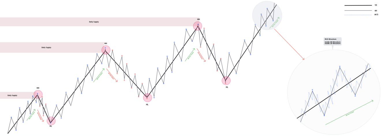 M15 swing structure within -> 4H swing structure within -> M15 swing structure