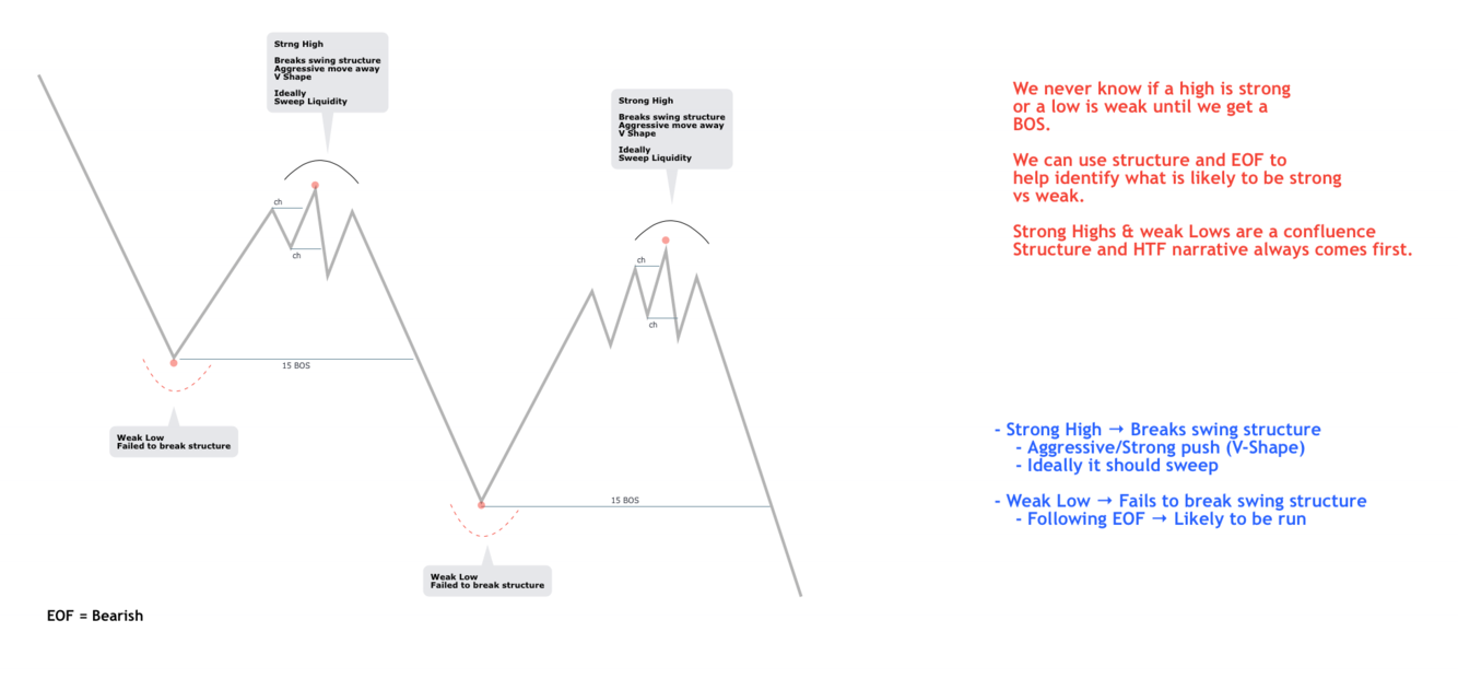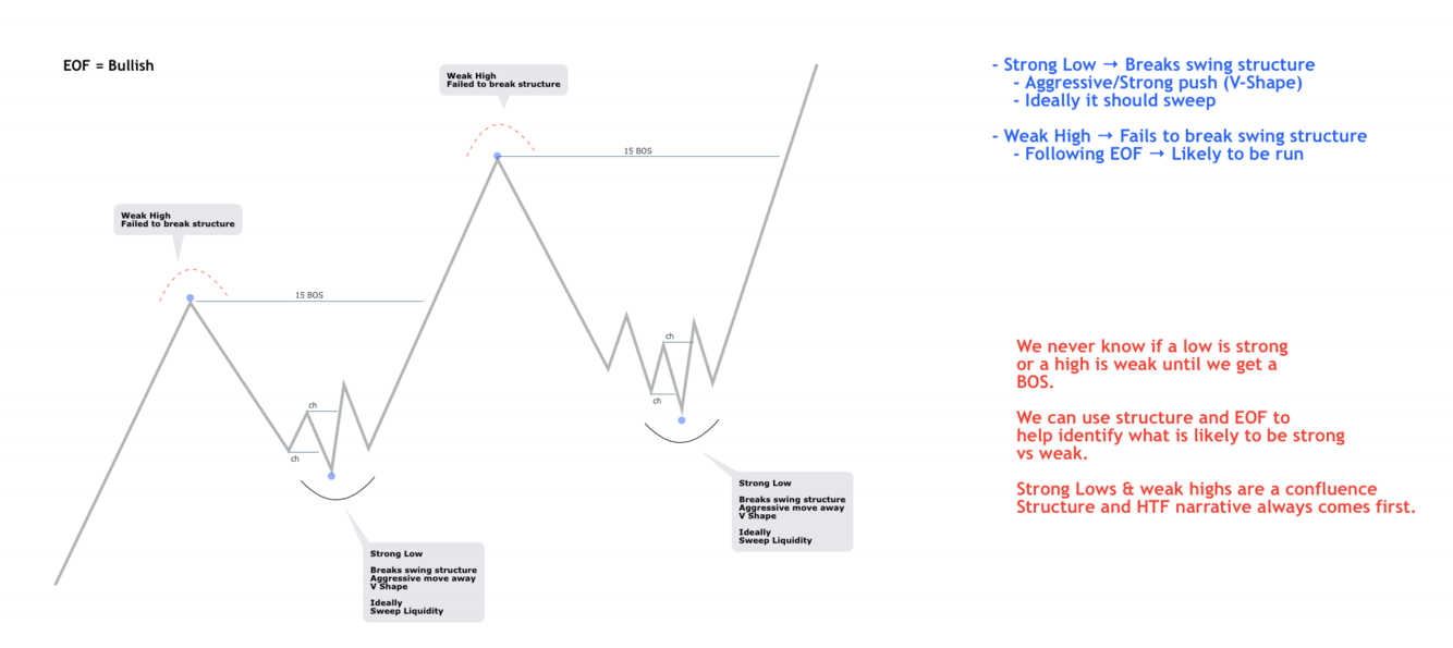 Following EOF -> Likely to be run (especially if we get a CHoCH towards the potentially weak High/Low)