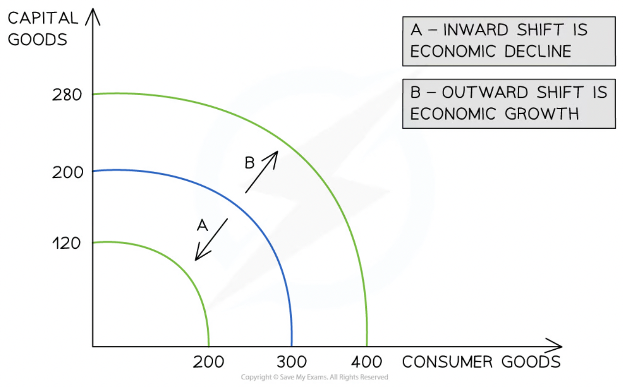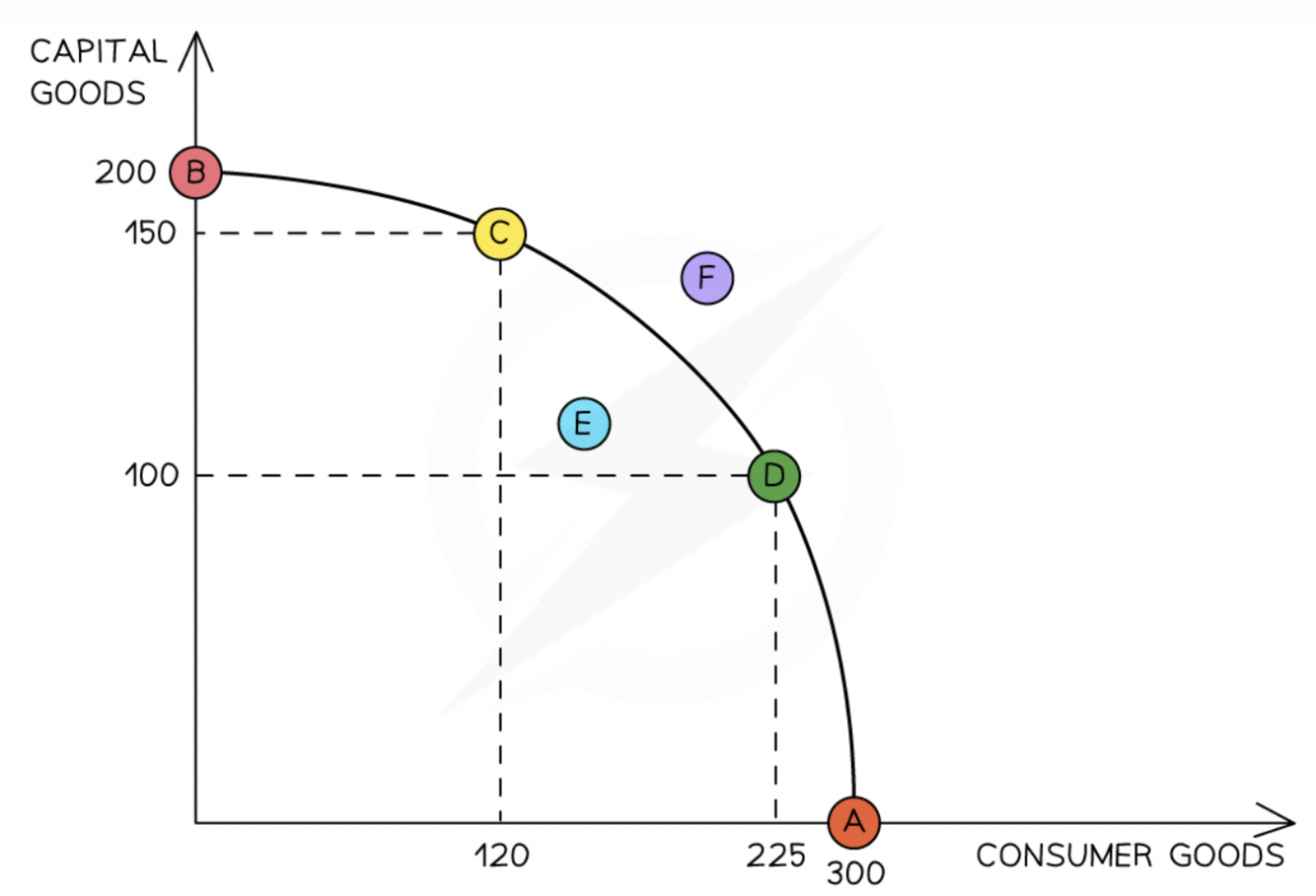 Economic model that considers the maximum output of a country if it uses all of its factors of production to produce only two goods/services