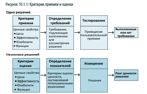 Критерии приемки определяют набор метрик, которые позволяют ранжировать решения и альтернативные проекты в соответствии с их ценностью для заинтересованных сторон.