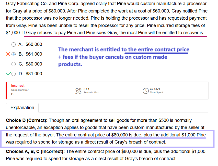 When goods are custom-made and not suitable for resale, the seller can sue for the entire contract price plus incidental damages, not merely reimbursement of costs.