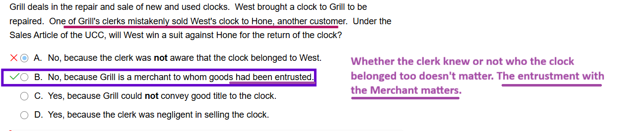 If you leave your property to a merchant, and the merchant sells it to another customer, you cant recover it from the customer, because it was a Merchant whom you entrusted the property too. (You can sue the merchant though)