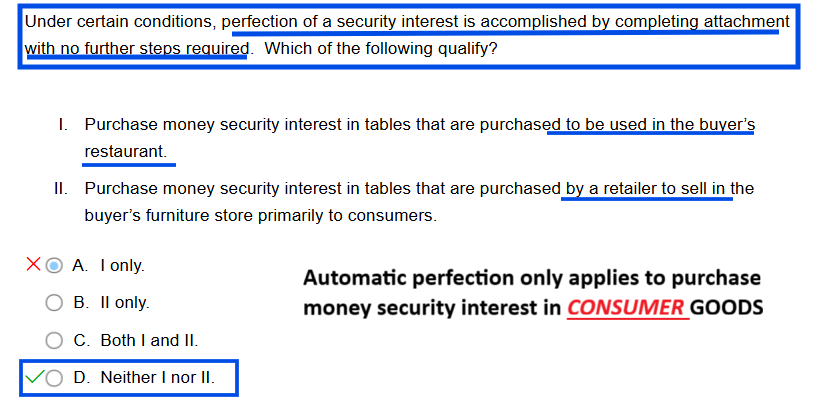 Auto perfection in perchase money security interest only applies to CONSUMER Goods