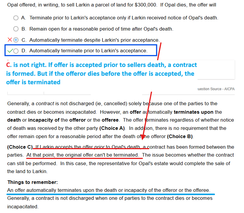 If an offer is accepted prior to the sellers death, a contract is formed, not terminated. BUT if the offeror dies before the offer is accepted, the offer is terminated.