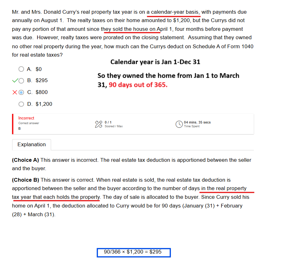 If prorating Realty taxes from calendar year, prorate from January 1 through the date property is sold