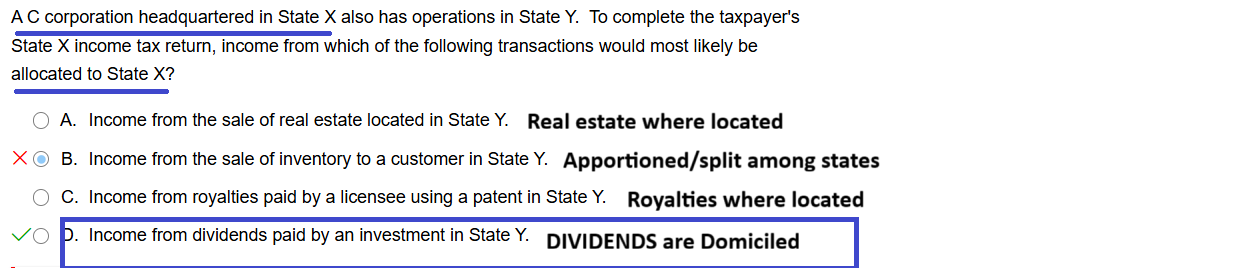 Dividends, interest, capital gains are domiciled. Everything else is where located/apportioned
