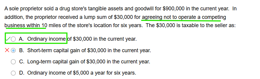 An agreement to not compete is ordinary income