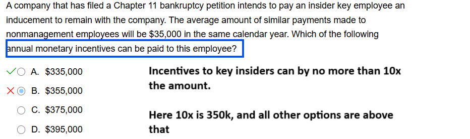 Incentives to key insiders can by no more than 10x the amount.