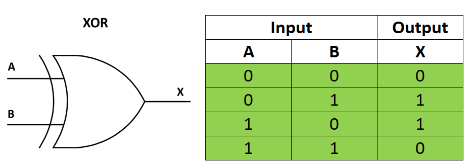 Draw the XOR gate and complete a truth table for it