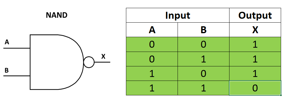 • Output will be 0 if both inputs are 1