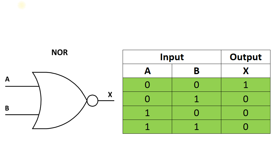 Draw the NOR gate and complete a truth table for it