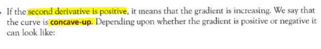 What is the gradient when the second derivative is positive?