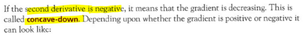 What is the gradient when the second derivative is negative?