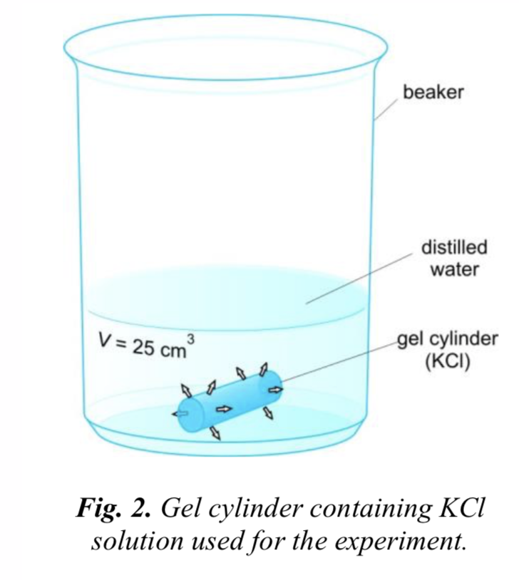 The gel contains KCl solution, and is surrounded by distilled water. During the diffusion process, K+ and Cl– ions move outward into the water, and make it a ___