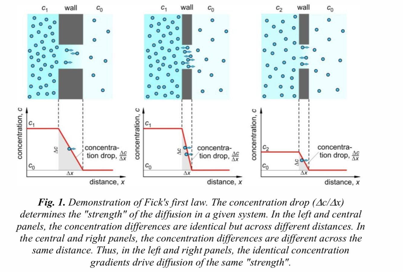 the flow density of particles per second is proportional to the concentration drop