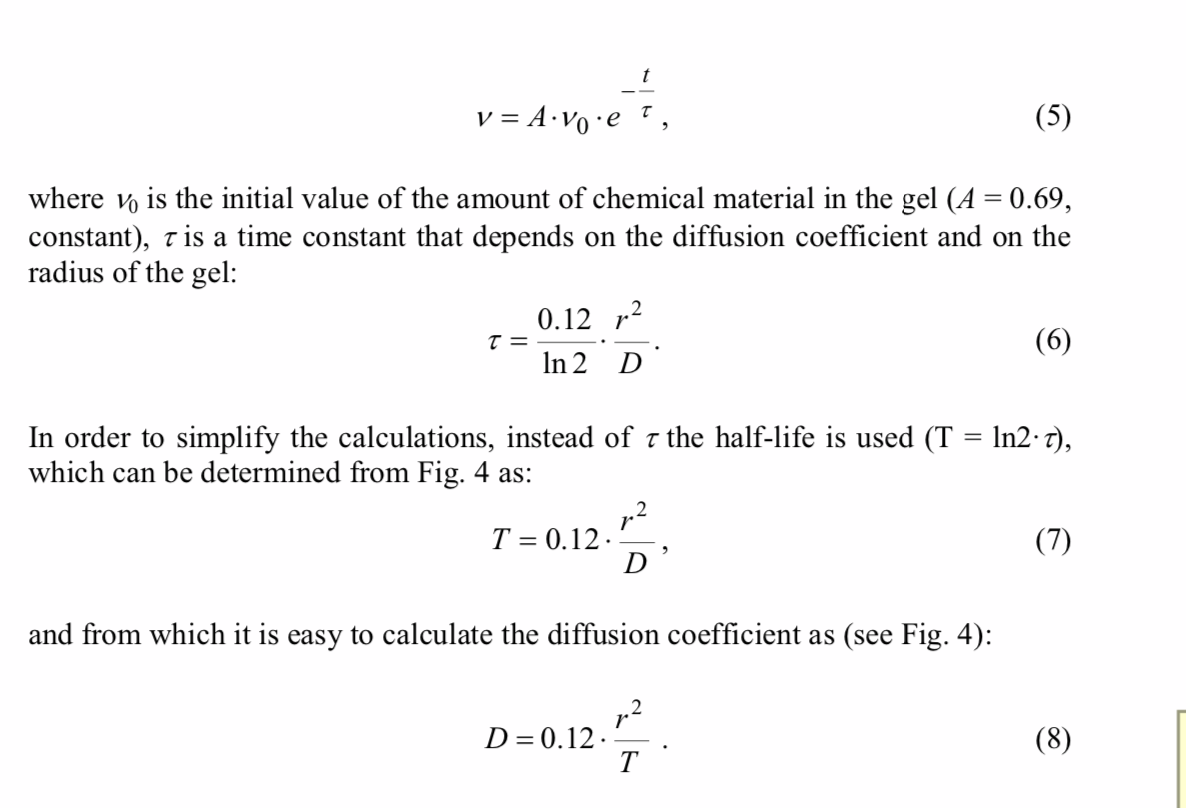 depends on the diffusion coefficient and on the radius of the gel