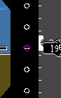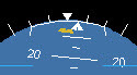 Glideslope deviation scale in view after ILS is tuned. Pointer in view indicates valid data is received–turns amber and flashes to indicate excessive glideslope deviation