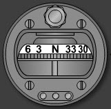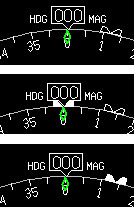 Localizer deviation scale in view after ILS is tuned. Pointer in view indicates valid data is received–turns amber and flashes to indicate excessive localizer deviation