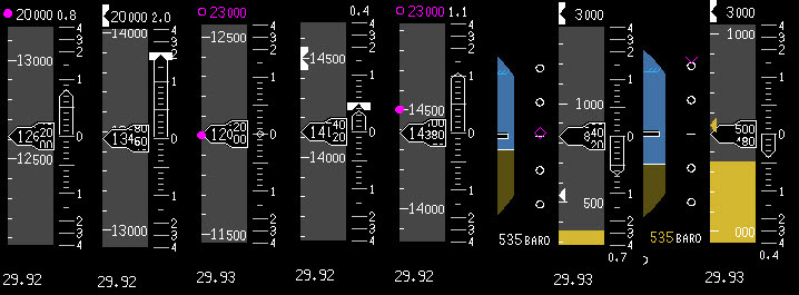 Altitude Bug, Altitude Tape, Vertical Speed, Minimum Bug, Selected Minimum, & Baroset