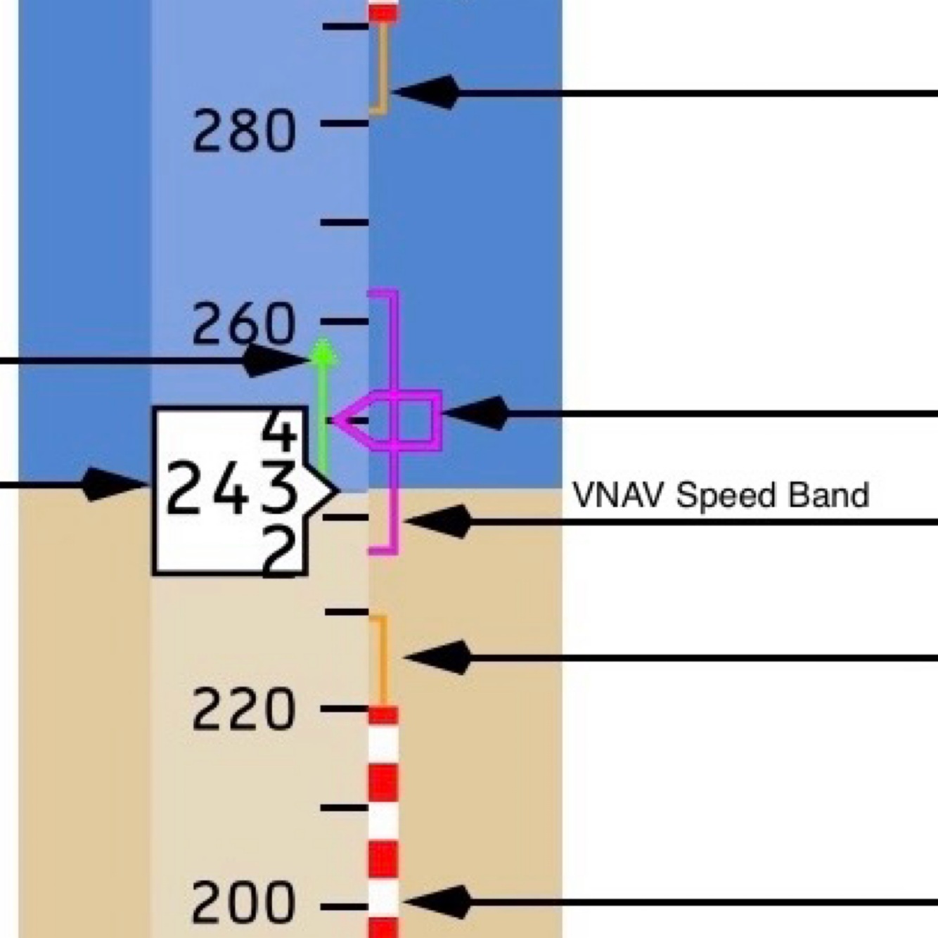 This solid green dot is called the Range to Target Speed Dot (RTSD), and indicates where the aircraft will achieve the FMC or MCP target speed.