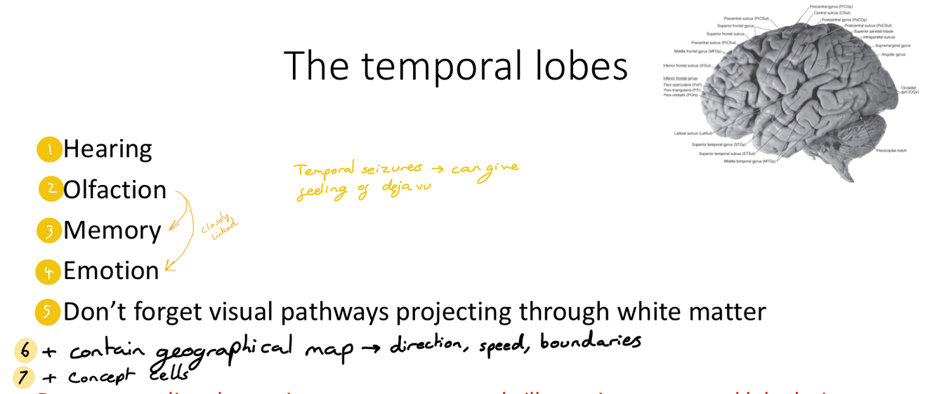 What are the functions of the temporal lobes? (7)