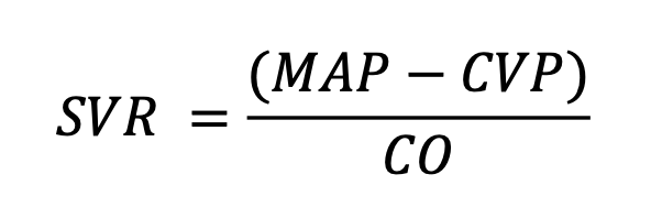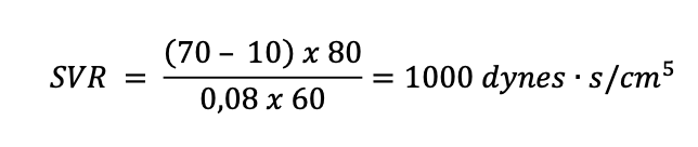 Man multipliserer (MAP-CVP) med 80 for å konvertere enheten til dynes·s/cm⁵, som er standard klinisk enhet for SVR
