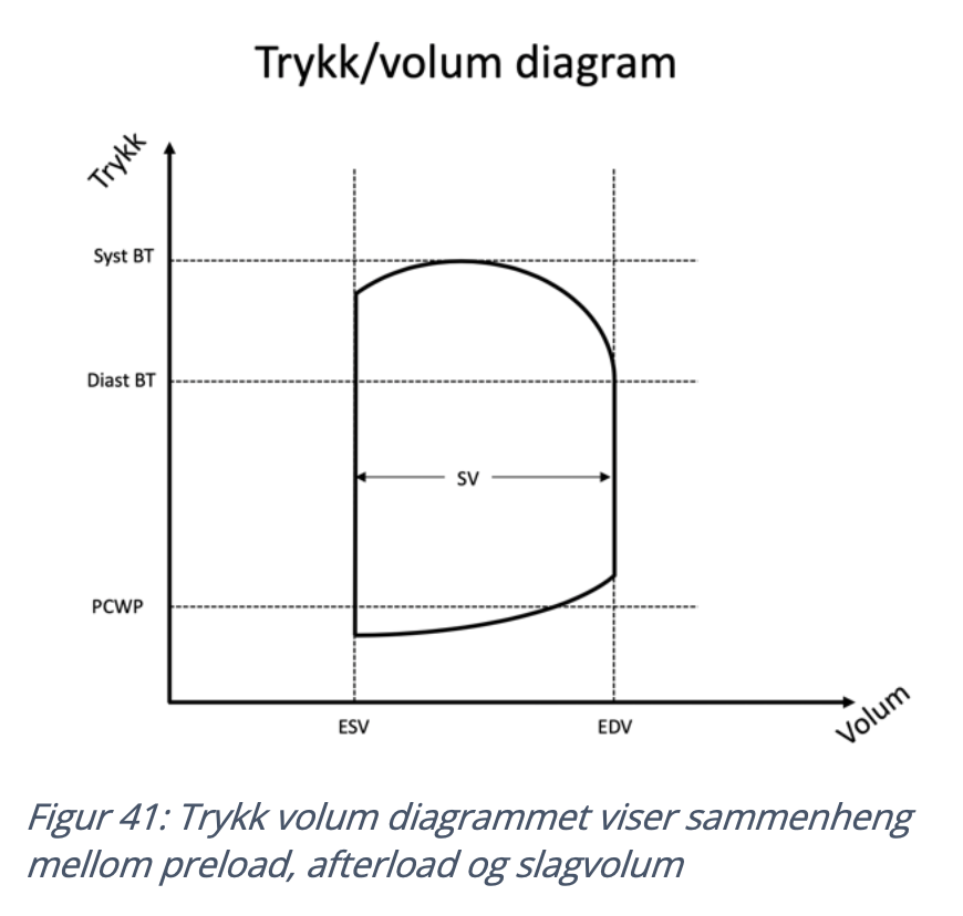 Sammenhengen mellom trykk og volum i venstre ventrikkel gjennom hjertesyklusen, og hvordan preload, afterload og slagvolum henger sammen