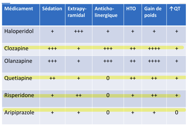 Quel antipsychotique suivant serait le moins bien toléré pour un patient ?