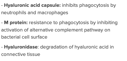 Identify and describe 3 virulence factors of streptococcus pyogenes.