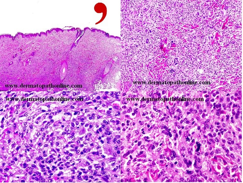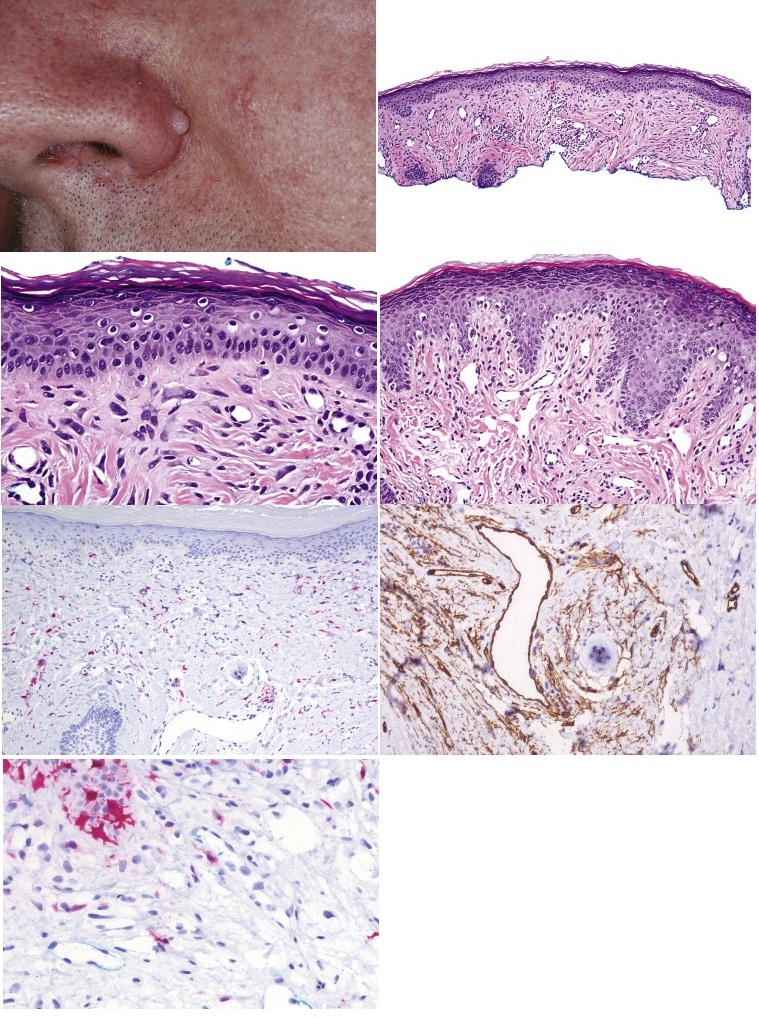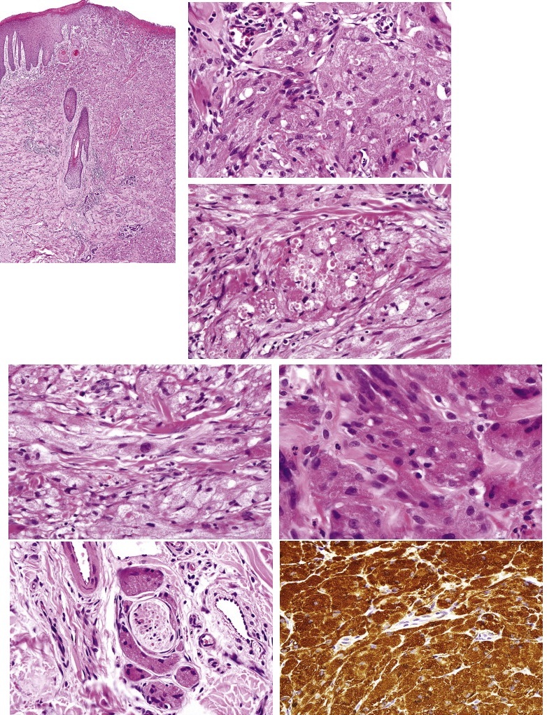 Fig 4 Dermatofibrosarcoma protuberans. Pigmented dendritic cells and melanophages characterize the Bednar tumor variant.