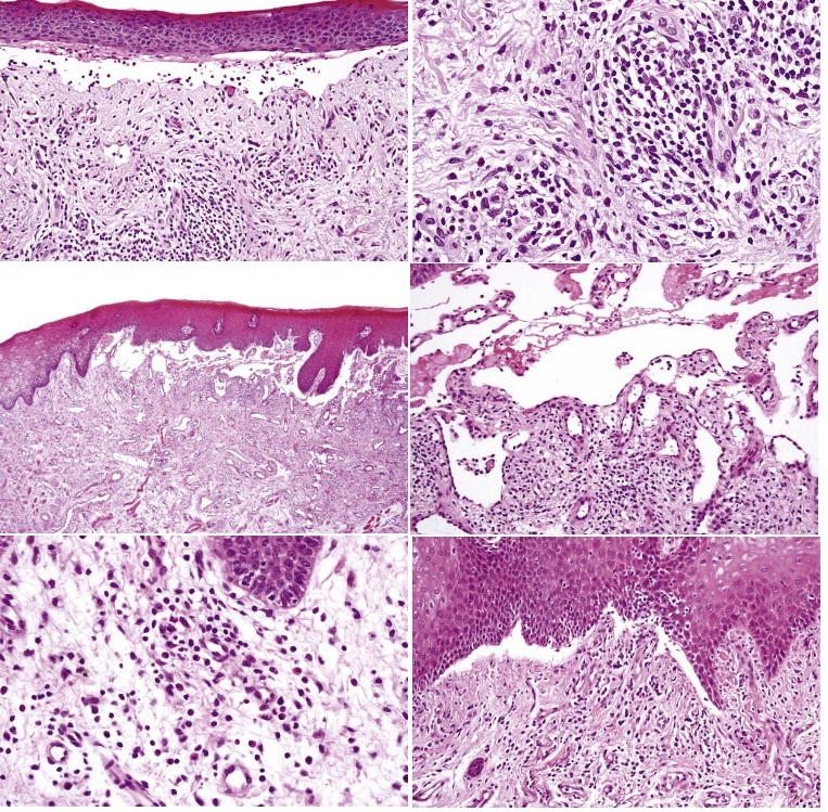 Fig 6 Mucosal pemphigoid. There is perivascular and interstitial lymphohistiocytic infiltrate with occasional plasma cells.