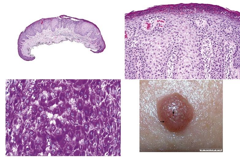 Fig 2 Clear cell acanthoma. There is an intracorneal pustule. The keratinocytes have pale-staining cytoplasm. There is no atypia.