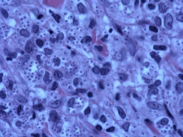 Fig 4 Granular cell tumor. Very occasional pleomorphic nuclei are sometimes seen and in the absence of other features of malignancy are of no consequence.