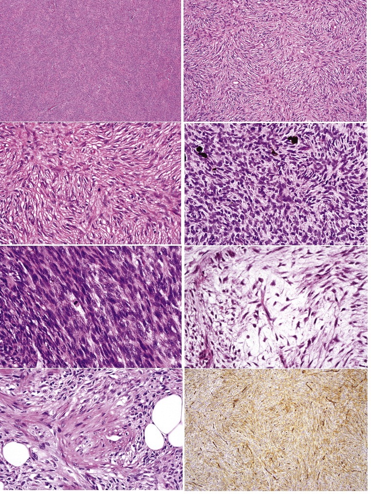 Fig 7 Dermatofibrosarcoma protuberans. Exceptionally smooth muscle differentiation is seen—the myoid variant.