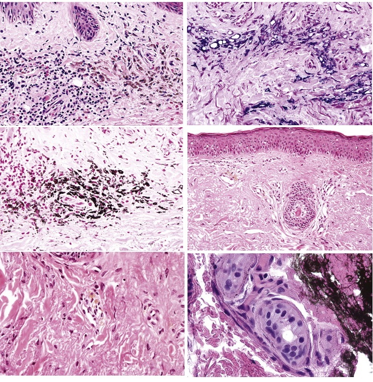 Fig 1 Type 2 minocycline pigmentation. Note the golden-brown pigment granules.
